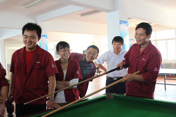 “開展生動活潑、豐富多彩的文體活動,可以讓廣大員工在繁忙的工作中緩解疲勞,釋放壓力,放松心情,提高生活質量,使之以飽滿的熱情投入到工作中去!焙懔瘓F董事長徐旗釗告訴記者,文體活動是構建企業(yè)和諧的重要途徑,所以公司每年都會舉行乒乓球、拔河、卡拉OK、摜蛋、象棋等各類比賽。利用星期天工會還組織企業(yè)優(yōu)秀員工外出旅游,或與其它企業(yè)組織青年聯誼等活動。