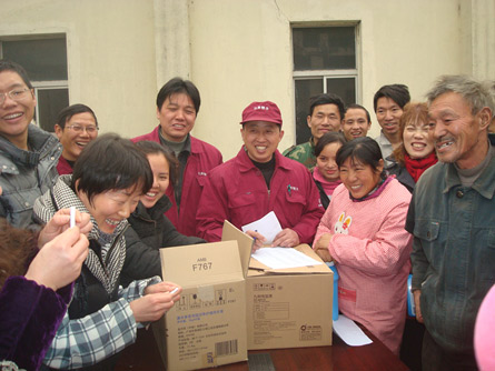 午飯時間剛結(jié)束,在辦公室門前的空地上,管理人員在徐總的帶領下開始緊鑼密鼓的布置抽獎活動,活動還未開始,抽獎桌周圍已經(jīng)被大伙擠的滿滿的。抽獎活動是有獎競答,但凡參加的人均有參與獎——藍月亮洗衣液一瓶,答對問題的另外有問答獎,問答獎有牙膏、護手霜、肥皂等日常生活用品,即使回答不出來,請抽獎者唱支歌一樣也可以拿到獎品。競答題分為安全文明生產(chǎn)、腦筋急轉(zhuǎn)彎、生活小常識等,最后還有一個特等獎是徐總親自出題,獎品是電飯鍋!
