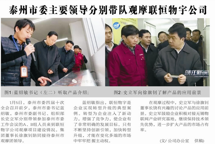 泰州市委主要領(lǐng)導(dǎo)分別帶隊(duì)觀摩聯(lián)恒物宇公司